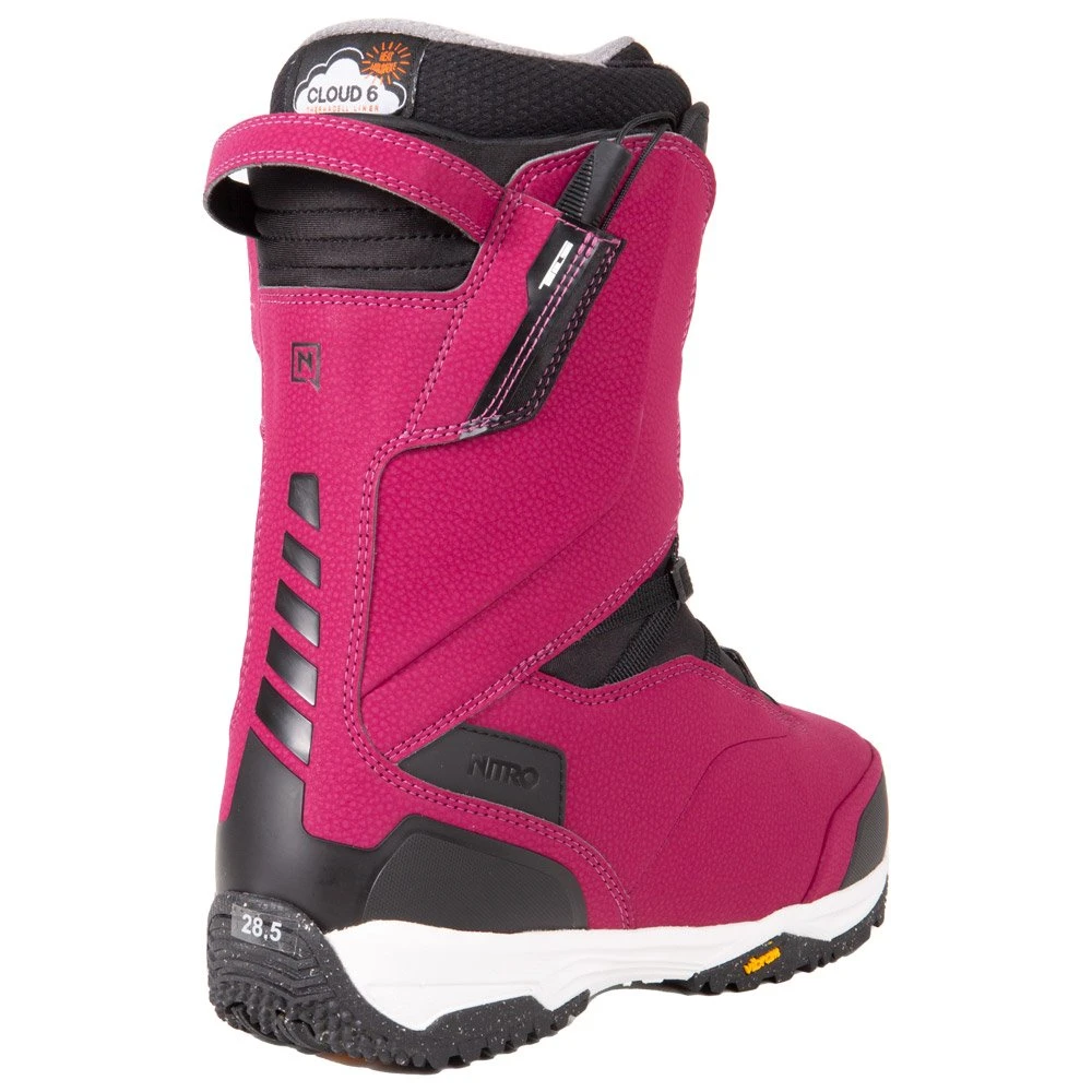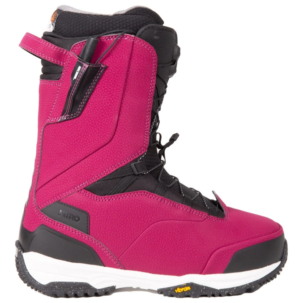Der Snowboard Stiefel Nitro Venture Pro TLS ist eine verbesserte Version des Venture TLS. Er bietet dank einer doppellagigen Ortholite-Sohle (statt einer einlagigen) und einer hochwertigeren, griffigeren und robusteren Vibram-Außensohle einen höheren Komfort und eine bessere Dämpfung.