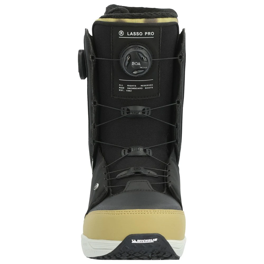 Die Ride Lasso Pro überzeugen unter sehr verschiedenen Konditionen und in unterschiedlichen Geländen. Ihre gehobene Steifigkeit sorgt für eine beeindruckende Präzision und Reaktivität, was ideal für Freeride und Carving auf den Pisten ist. Das Double-Boa-Schnürsystem ist präzis und lässt sich schnell anwenden. Es sorgt für einen ausgezeichneten Halt und somit jede Menge Boardkontrolle, was auch jenen gefällt, die ihre Tage mit ein wenig Freestyle würzen wollen.